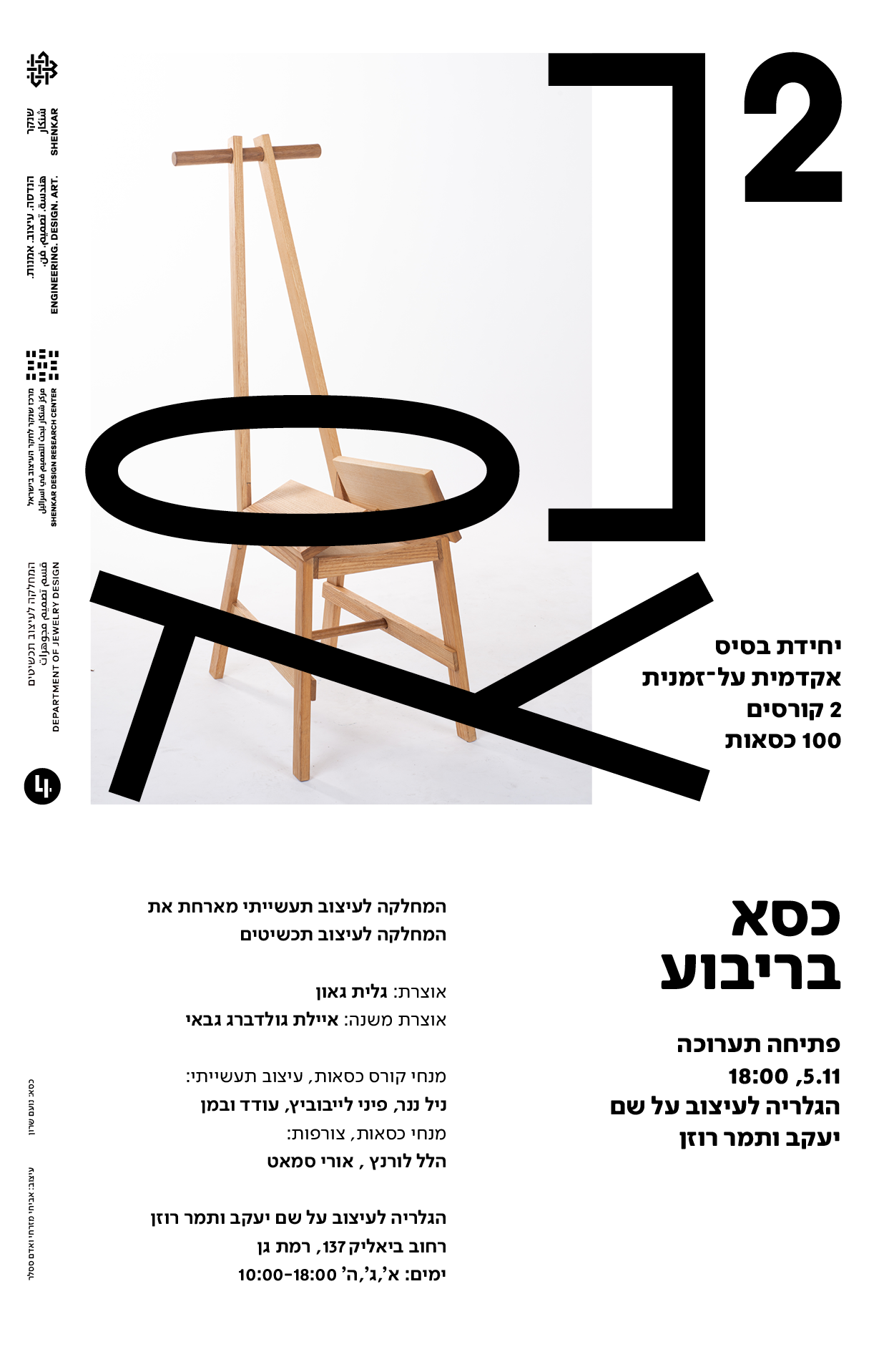 המחלקה לעיצוב תעשייתי מארחת את המחלקה לעיצוב תכשיטים לתערוכה על יחידת בסיס אקדמית ועל זמנית – הכיסא.
